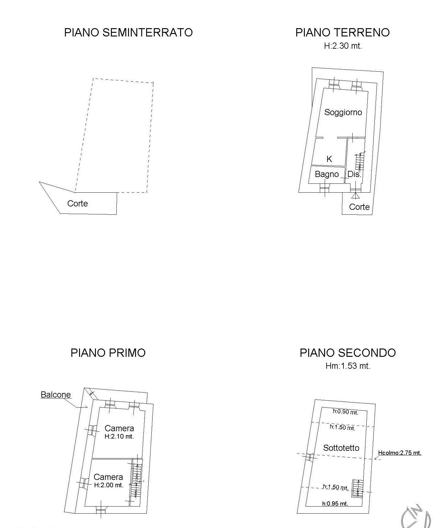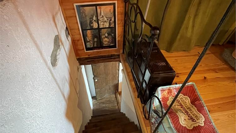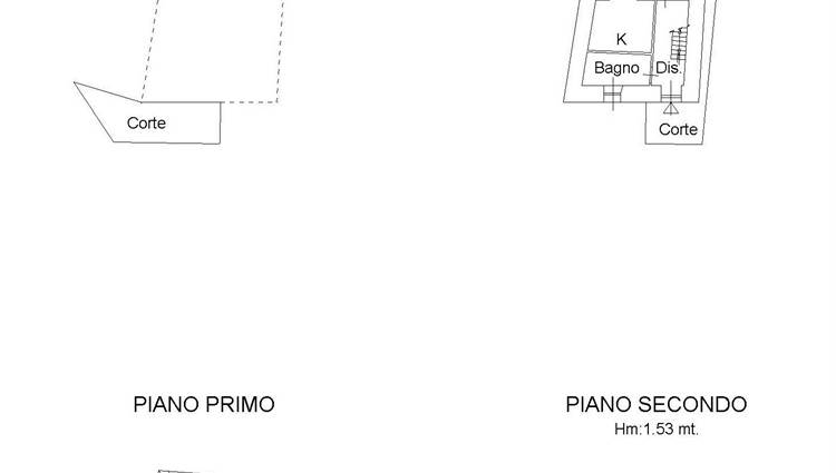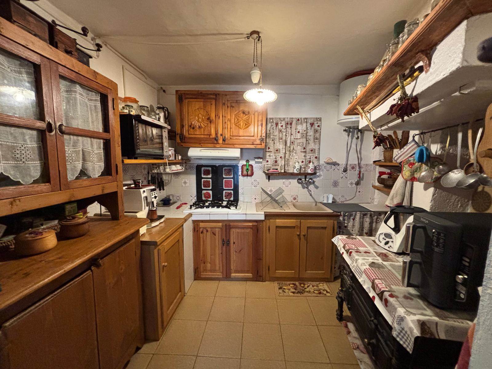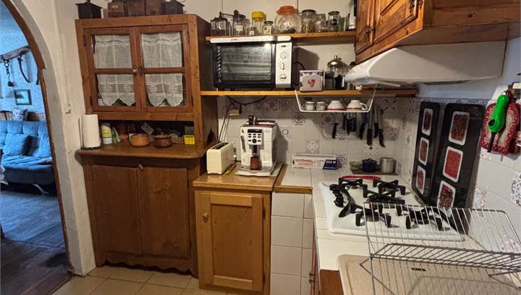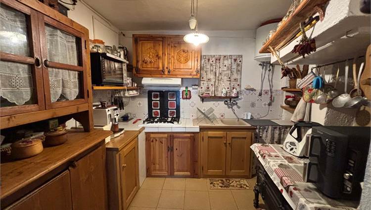 Al piano seminterrato due locali ad uso deposito, caratterizzati da una suggestiva volta in pietra, al piano terra un soggiorno con locale cucina, bagno e scala di collegamento con il primo piano dove si trovano due camere da letto con balcone panoramico.