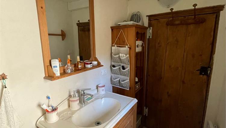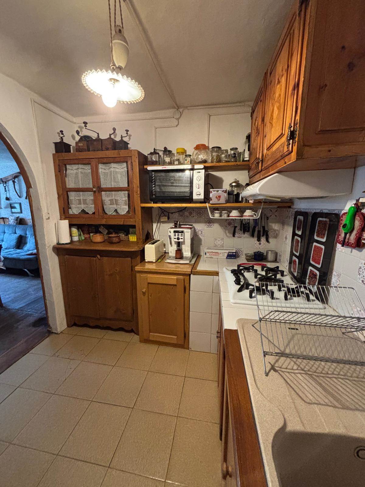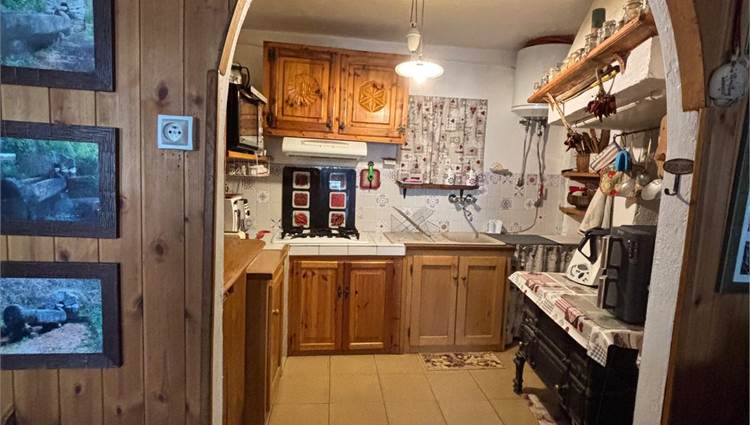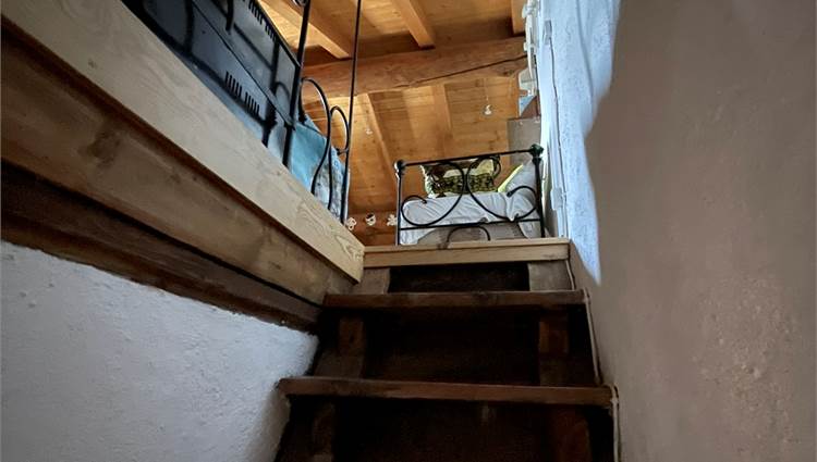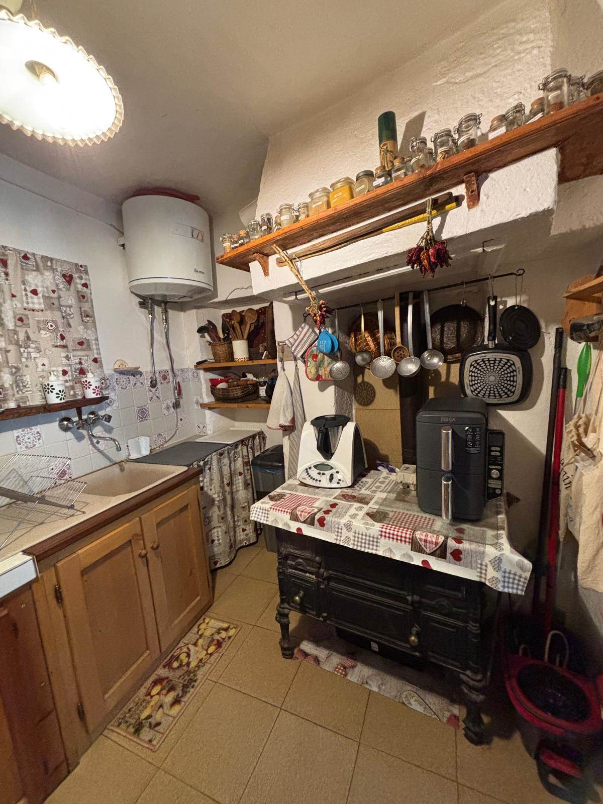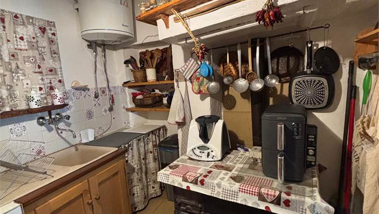 Al piano seminterrato due locali ad uso deposito, caratterizzati da una suggestiva volta in pietra, al piano terra un soggiorno con locale cucina, bagno e scala di collegamento con il primo piano dove si trovano due camere da letto con balcone panoramico.