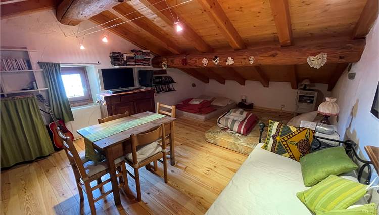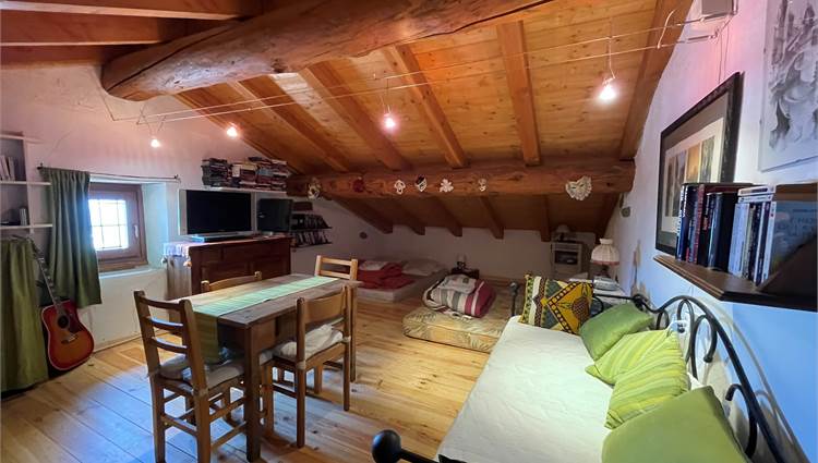 Al piano sottotetto ampio locale mansardato ideale come ulteriore zona notte o area relax .